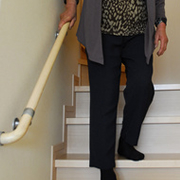 高齢に伴い身体機能が低下してくると、歩行時にからだのバランスを崩したり、室内のわずかな段差につまずいて転倒することがあります。手すりは、動作を補助し、安全な歩行や移動を助けるといった役割があり、上肢を使って体位を安定させることができます。手すりは、門扉から玄関までにアプローチ、玄関、廊下、階段、洗面、脱衣所、浴室、トイレなどに設置することが多いですが、使用方法は大きく分けて次の2つに分かれます。