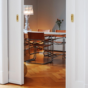 住宅で使用されている建具は、引き戸、折れ戸、などが代表的です。折れ戸は浴室などの幅の狭い開口部で使用されることがあり、アコーディオンドアは簡易な間仕切りとして使用されます。ただし、高齢者や障がい者には、開閉操作が難しく、あまりおすすめできる戸ではありません。引き戸は、高齢者や障がい者には、開閉動作が簡易ですので、多く使用されています。住宅での建具は、1枚引きから4枚引きまでが多く使用され、用途によって、使いわけができます。一方、開き戸は開閉時に、からだがあおられるような格好になったり、戸が急に開かれると通行している人に衝突する危険性があるので、使用場所や開き勝手(開く方向、建具の吊り元など)には、注意する必要があります。
